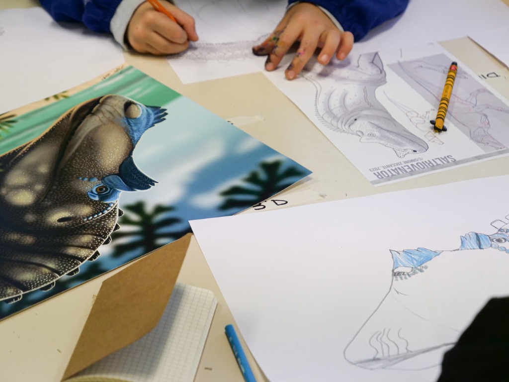 Laboratorio divulgativo e di disegno dedicato al Mesozoico, “l’era dei dinosauri”, articolato in due parti.