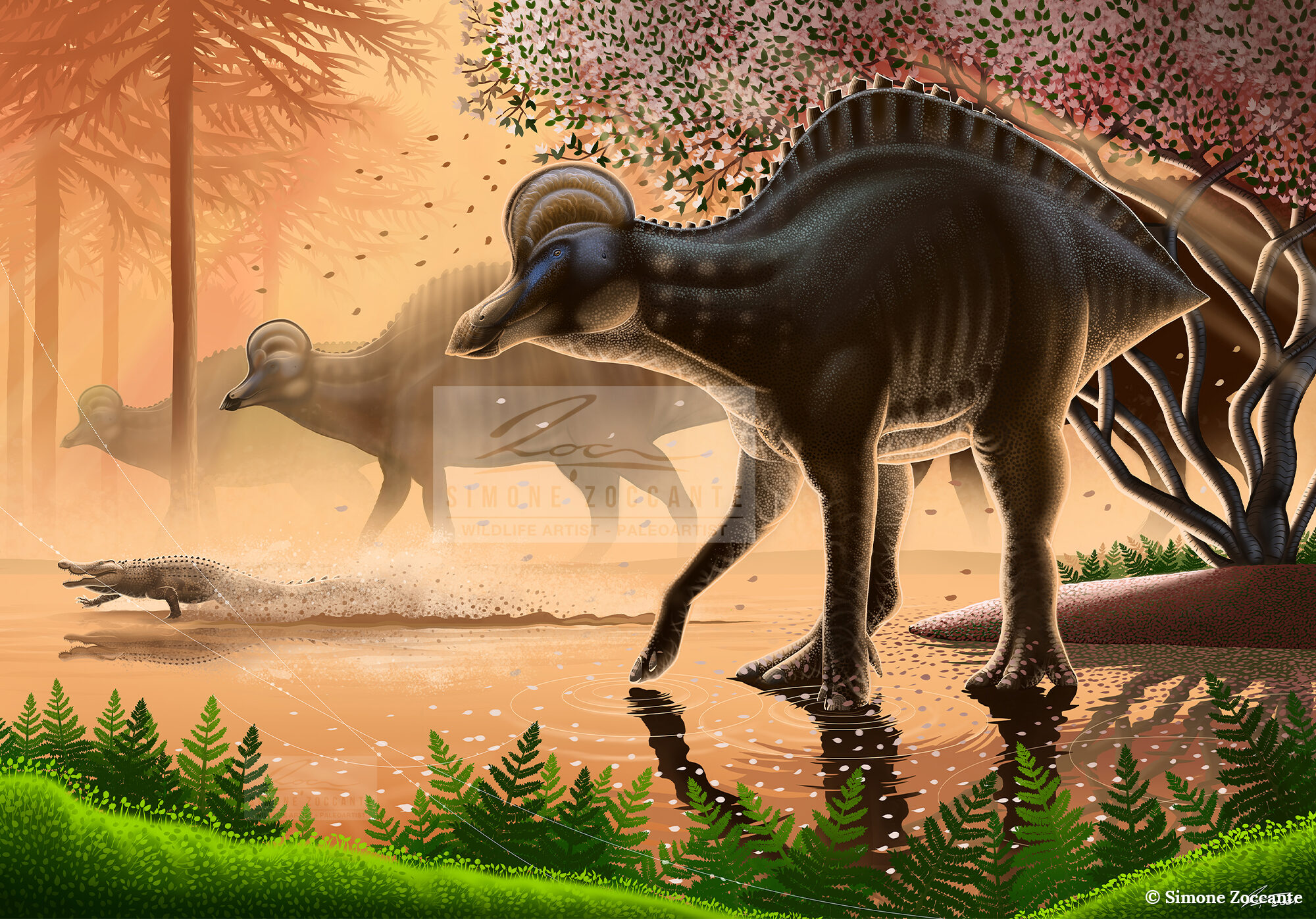 In the work, I have also included a young Deinosuchus, even though I am aware that it is not present in the fossil record of the formation, its presence in northern Mexico (not far from Baja California) prompted me to include it in the work.